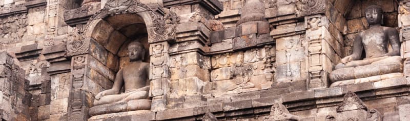 Both Borobudur and Prambanan were constructed around the 6th to 8th century. Borobudur came first, but then the Sultan converted from Buddhism to Hinduism, so he built Prambanan. Both eventually fell into ruin when the Arabs converted everyone to Islam. Only the Javanese could still smile after all that!